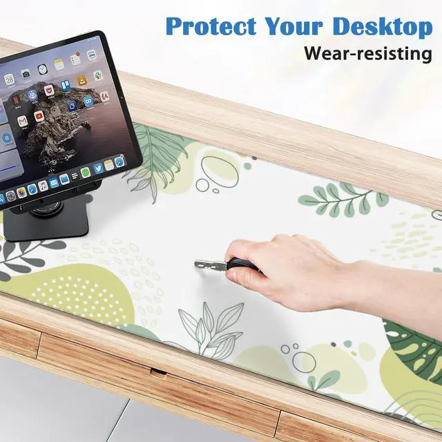 Environmental, and safe to use. ^^ Soft and Non-slip Rubber BaseThe soft and dense non-skid nature rubber base keeps the pad firmly in place, it can effectively prevent the mouse and keyboard from sliding and moving for stable operation. The desk pad is flexible enough to be rolled up for easy transport, to move around so you can work or game wherever you want. ^^ Suitable for many occasionsLarge enough size can protect the desktop from abrasion and liquid spills. Works well on all types of desks including wood, glass, leather, metal, marble desk and more.