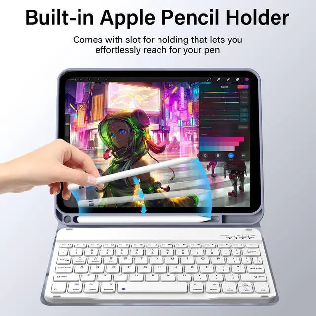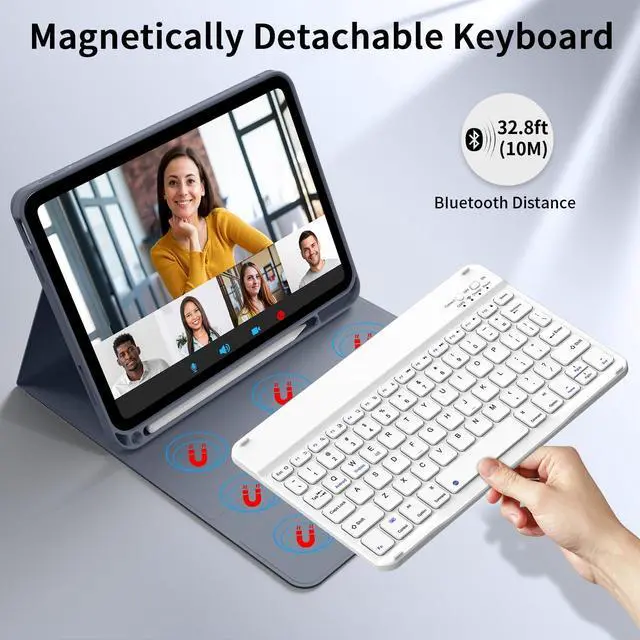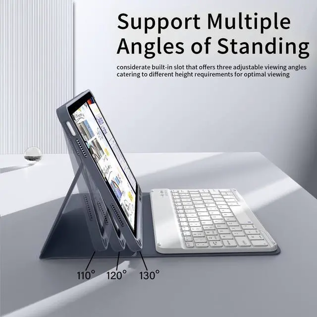 Model: A2589/A2591/A2588/A2324/A2072/A2316/A2325/A2902/A2903/A2904). NOT compatible with any other iPad models. Please check the back bottom of your iPad to find the model number before placing order. ^^ Slim Wireless Bluetooth KeyboardThe slim ( 6.2 mm) removable keyboard is attached to this iPad air keyboard magnetically (supporting Windows, IOS & Android System), let your iPad instantly become a portable laptop, perfect for working, typing, editing or watching videos, greatly improved your iPad productivity. ^^ Long Battery Life & Multi Angle Support Built-in industry-high rechargeable Li-polymer battery make the wireless keyboard of this iPad air 5th generation keyboard stand by for more than 3 days after 2-3 hours of full charge. The protective shell can be placed at different tilt angles to adjust the optimal viewing angle, very flexible and user-friendly. ^^ Buit-in Pencil Slot & Sturdy PU MaterialThe iPad air 4th generation case with keyboard has a convenient left side built-in pencil slot that easy to storage and remove your pencil (Apple Pencil is Not included). Premium PU leather cover is waterproof, scratch proof and fingerprint proof, providing full protection for your beloved tablet. ^^ Precise Cutout & Auto Sleep/Wake FunctionPrecise cutout allows full access to all ports, user interface, sensors, speakers, microphone and cameras.