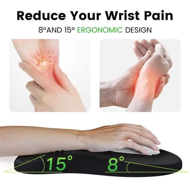 Relief: Experience unparalleled comfort with our mouse pad with wrist rest, meticulously designed with an 8 and 15-degree sloped surface to alleviate wrist pain and discomfort, ensuring prolonged use without strain ^^