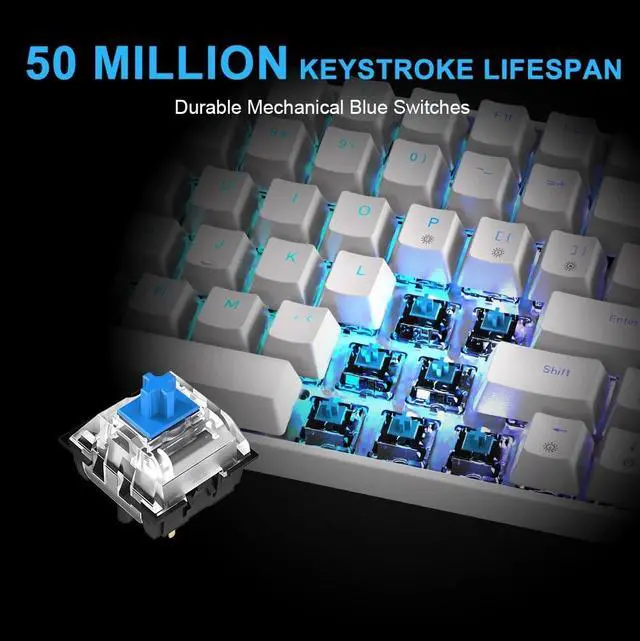 ^^ Mechanical Blue Switch: Provides clicky feedback, making it perfect for both gaming and typing. With a durability of 50 million keystrokes, it maintains responsiveness during intense gaming sessions.