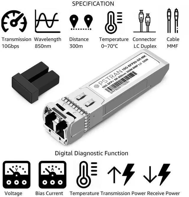 Hot Pluggable SFP+ MSA and RoHS Compliant to Maximize Uptime and Simplify Maintenance ^^ Compliant to IEEE 802.3 ae Gigabit Ethernet and SFF-8472, SFF-8431, SFF-8432 with duplex LC receptacle