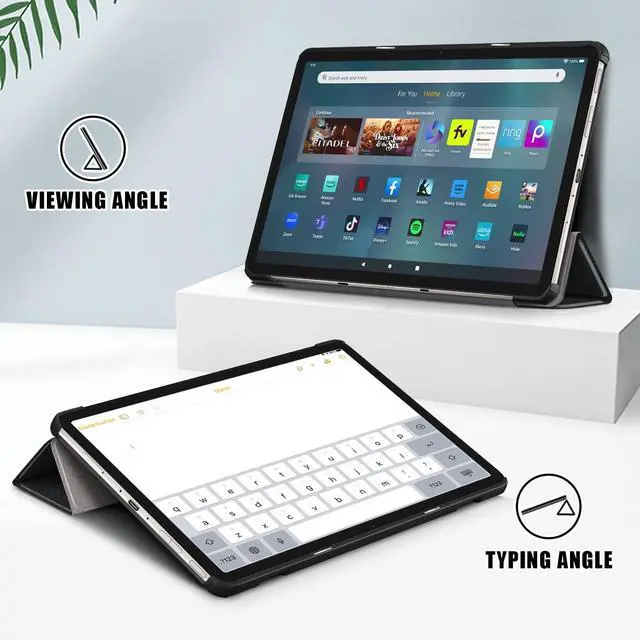 (Smart Function): With built-in magnets, automatically wakes or puts your Fire Max 11 tablet 13th Gen to sleep when the lid is opened and closed. 5.