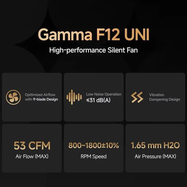• Low-noise PerformanceDual-side corner rubber pads cut down high-speed resonance for steady quiet. Its modular design makes cable management and daisy-chaining easy, ensuring top cooling with minimal noise.