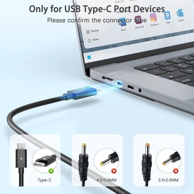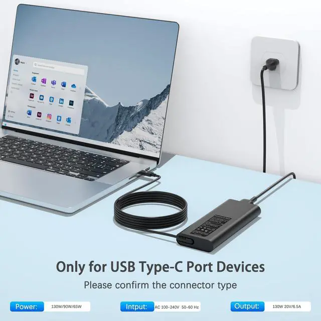 Input Voltage: 100-240V, Output: 20V/ 6.5A, Interface: USB-C/Type C Port, Power: 130 Watt ( Compatible with 90W 65W USB C Chargers),