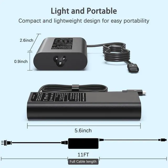Power Cord length: 11 feet. (130W high power output, let your XPS, Precision and other devices quickly back to blood, say goodbye to the long wait. 11 feet long power cord for your more convenient use, avoiding the problem of insufficient distance) ^^ Wide Compatibility, heesky 130w charger compatible with XPS 15 9500 9510 9520 9530 9575 2-in-1, 16 9640, 17 9700 9710 9720 9730, compatible with Precision 3480 3490 3540 3550 3560 3570 3580 3590 3470 3541 3561 3571 5470 5550 5560 5570 5750 5760 5770 3551 3581 3591 5480 5490 5530 2-in-1, compatible with Chromebook 11 3110 3110 2-in-1 3120 3100 3100 2-in-1 5190 5190 2-in-1, 13 3380, 14 3400, compatible with Alienware m17 R3, Alienware X14 R1, Alienware x14 R2, compatible with Vostro 13 5310 5320, 14 5490, 15 5590, 16 7620, compatible with Inspiron 16 7620 7630 7640 ^^ Wide Compatibility, heesky compatible with Latitude 3120 2-in-1 3140 3300 3301 3310 3310 2-in-1 3320 3330 3340 3400 3410 3420 3430 3440 3450 3500 3510 3520 3530 3540 3550 5285 2-in-1 5289 2-in-1 5290 2-in-1 5300 5300 2-In-1 5300 2-in-1 Chromebook 5310 5310 2-in-1 5320 2-in-1 5330 5340 5350 5400 5400 Chromebook 5401 5410 5411 5420 5421 5430 5431 5440 5450 5455 5500 5501 5510 5511 5520 5521 5530 5531 5540 5550 7200 2-In-1 7210 2-in-1 7300 7310 7320 2-in-1 7320 Detachable 7330 7340 7350 7350 2-in-1 Detachable 7389 2-in-1 7390 2-in-1 7400 7400 2-In-1 7410 2-in-1 7420 2-in-1 7430 7440 7450 7455 7520 7530 7640 7650 9330 9410 2-in-1 9420 2-in-1 9430 9440 2-in-1 9450 2-in-1 9510 9520 2-in-1 ^^ Safe and efficient charging, This 130W USB laptop charger has passed CE, ROHS safety certificates, with over-current, over-voltage, overheating and short-circuit protections to ensure that you can use it with peace of mind.