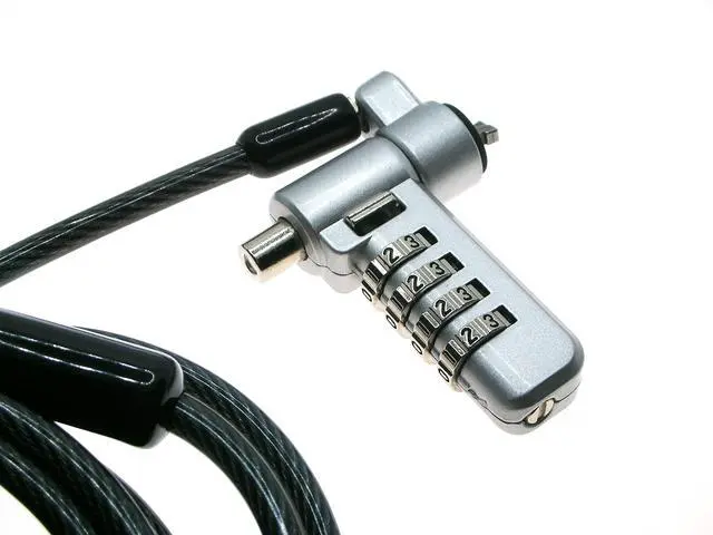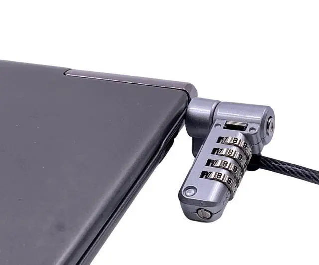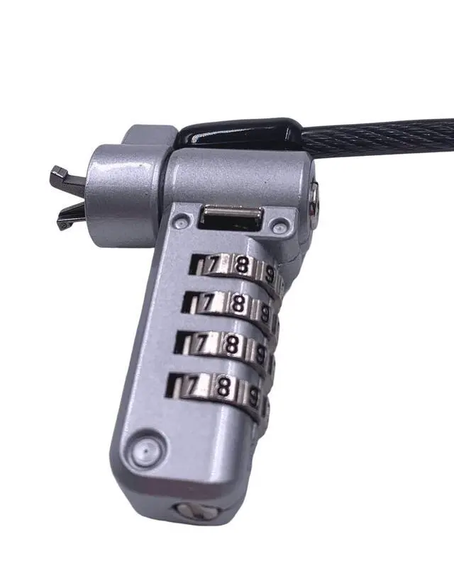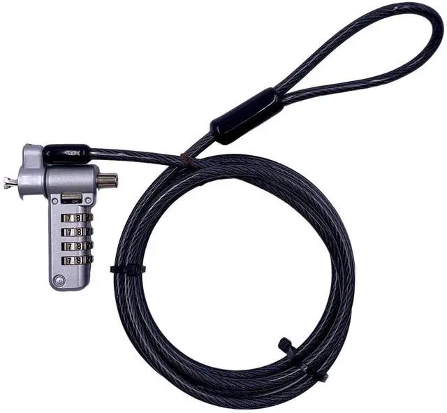 Patented 3-in-1 locking head fits 3 types of security slot: standard security slot, nano security slot and wedge lock slot ^^ Securely protect laptop computer, notebook computer, desktop computer, monitors, projectors, LCD and Plasma Screens and other devices from thieves ^^ 4-digit set-your-own 10, 000-combination at your convenience ^^ Easy-to-position 360-degree rotating and pivoting 6.5 feet (200cm) 4.5 mm stainless steel cable with a phthalate-free PVC coating ^^ ush-to-lock function allows for easy one-handed use