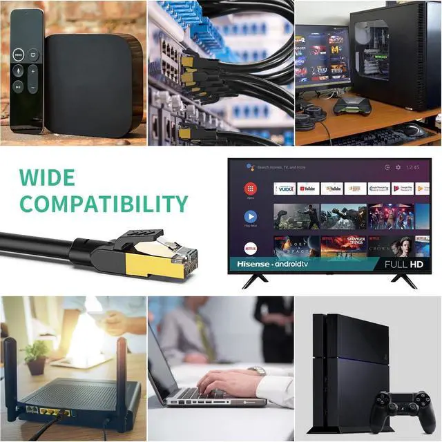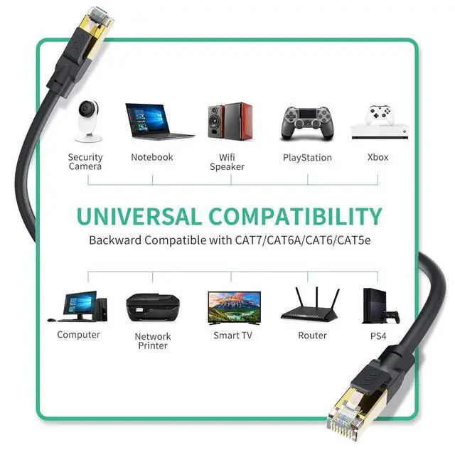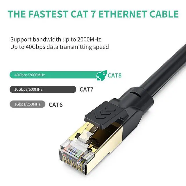 Ethernet Cable: Our CAT8 cable supports bandwidth up to 2000MHZ and data transmission up to 40 Gigabits per second, so you can surf the net, stream videos, music, play games and other data at hyper speed without worrying cable mess.
