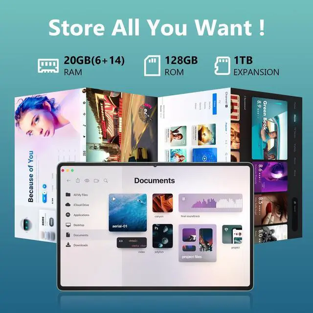 Bigger Than BiggerThe 11 inch tablet futures 20GB(6GB+14GB) RAM, 128GB internal storage and expandable storage up to 1 TB. The GMS Certified latest Android 15 Tablet, with basic Google apps already on and without bloatware. Get rid of unexpected ads and download apps from Google Play, such as YouTube, Netflix, and more. ^^ Brilliant Watching ExperienceAzeyou Tablet is powered by 1.6GH z Octa-Core Processor. 2025 newest Android 15 tablet provides + 40% faster processing speed than regular Quad-Core. 11-inch Tablet screen size with 1200X1920 resolution support, perfect for home entertainment and office.