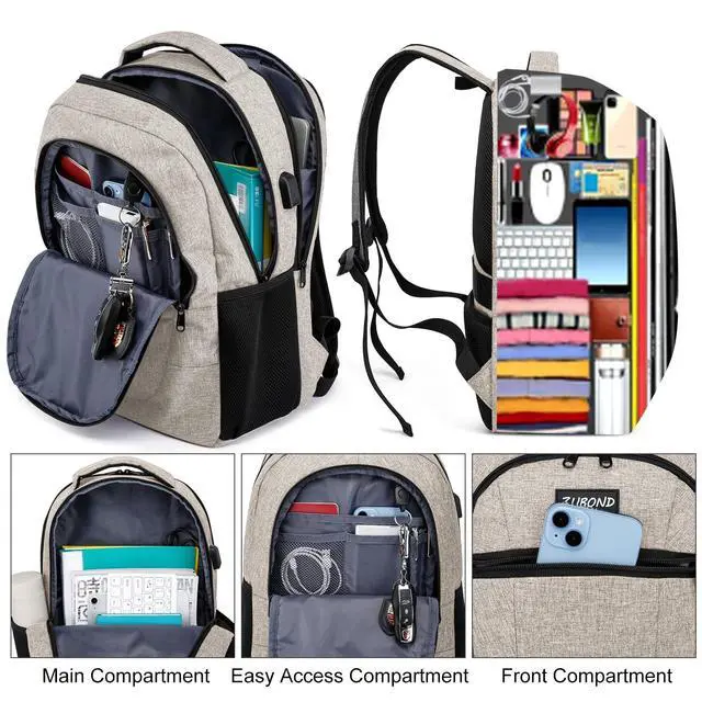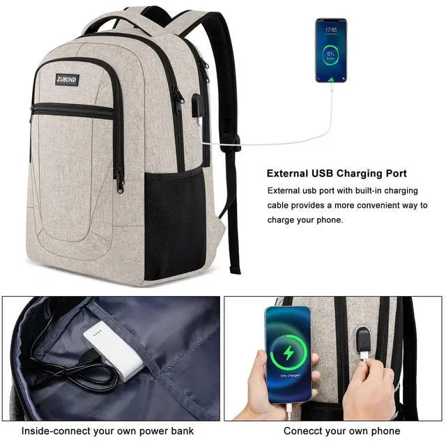 Classic Multi-Pockets Design -One separate laptop compartment hold 15.6 Inch Laptop as well as 15 Inch, 14 Inch and 13 Inch Laptop. One spacious packing compartment roomy for daily necessities, tech electronics accessories. Front compartment with many pockets, pen pockets and key fob hook, makes your items organized and easier to find ^^ Lightweight but Sturdy- Made of high quality waterproof oxford fabric, sturdy and wearing-resisting. But it only weighs about 2lbs. Ideal for short trips, daily travelling and business work ^^ USB charging port - With built in USB charger outside and built in charging cable inside, this usb backpack offers you a more convenient way to charge your phone while walking.