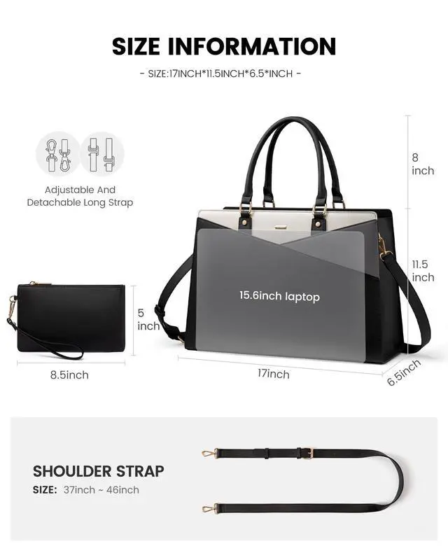 Weight: 2.58 lbs. The distance from the top handle to the tote bag is 8''. The adjustable shoulder strap is 37 to 46 inches long. It is large enough to keep your daily items organized. Its minimalist and chic appearance makes it suitable for both formal and casual occasions. ^^ One Bag Fits all OccasionThe elegant and unique design makes it very suitable for work, office, meeting, business trip, travel, coffee shop and other places as women's briefcase, teacher's handbag purse, computer tote bag or women's messenger bag. Simple color matching are easy to match with various clothing styles. ^^ Good Choice LOVEVOOK attaches great importance to product quality, The tote bag is ideal for personal use or as a fantastic gift for Christmas, Mother's Day, and Valentine's Day.