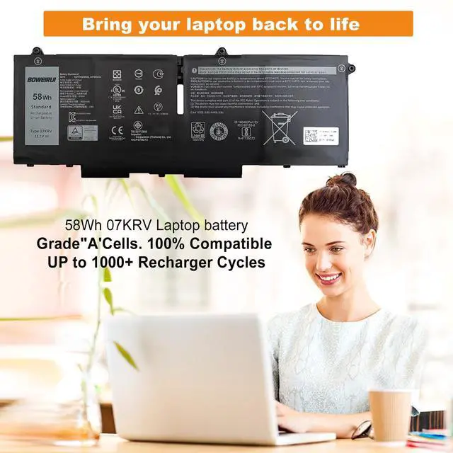 Package include: 1*07KRV battery 1 set matching installation tools. 1*Instructions for 07KRV Laptop Battery for latitude 5530 battery, All our products are 100% brand-new from manufacturer. Up to 500 recharge cycles over the life of the battery, ^^ Replacement for Part Number07KRV O7KRV M69D0 H4PVC 0H4PVC Y86WG 0Y86WG 08WRCR 8WRCR 078FWY 4FVJG ^^ Compatible with ModelsBattery 07KRV Replacement for Dell Precision 3570 Series; Replacement for Dell Latitude 5430 5530 Series; Replacement for Dell P104F005 P104F006 Series; Replacement for Dell P137G004 P137G005 P137G006 Series. ^^ AttentionThe 07KRV 58Wh 4-Cell and M69D0 41Wh 3-Cell are two different battery models with different specifications and dimensions. To ensure that you are purchasing the right battery for your purchase, it is recommended that you open the back cover of your laptop and check the model number of the original battery. Confirm that the battery model required for your laptop is the 07KRV 58Wh 4-Cell ^^ Quality AssuranceOur 07KRV laptop battery is highly compatible with the original Battery 07KRV for dell latitude 5530 battery for latitude 5430 battery and meets CE/FCC/ROHS/UL certified standards. Strict guidelines for compatibility, Use of built-in circuit protection to ensure safety and stability.