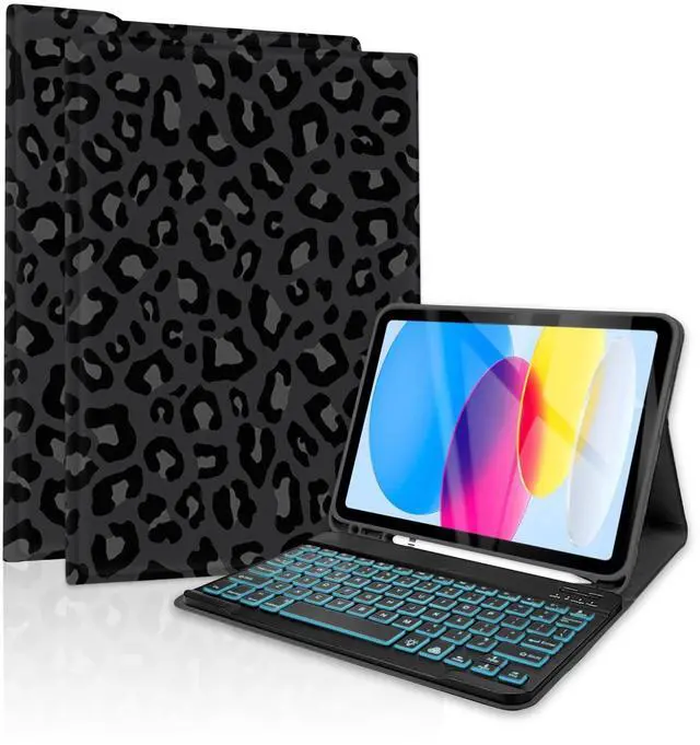 TopPerfekt for iPad 9th Generation Keyboard Case 10.2" 2021, Magnetically Absorbent, Auto Sleep/Wake, Pencil Holder for iPad 8th Gen 2020, 7th Gen 2019, Air 3rd, pro 10.5" (BlackGrey Leopard)