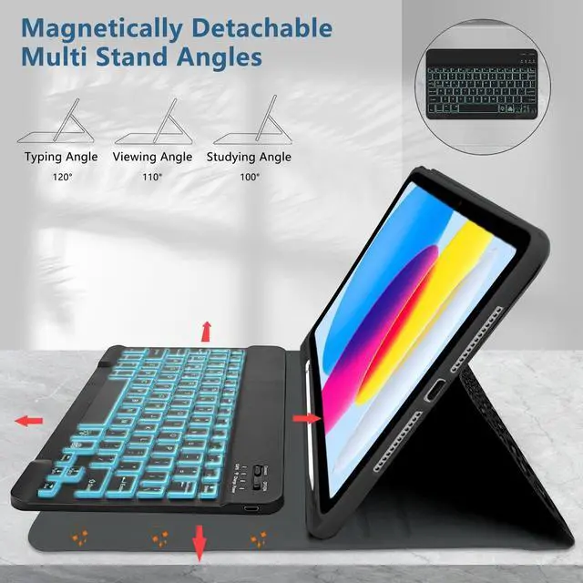[Rechargeable Keyboard] The iPad Bluetooth keyboard has a highly stable built-in battery, so you don't need to replace the battery. You can use the charging cable that comes with the keyboard to charge the keyboard. The keyboard has a Bluetooth acceptance range of 10 meters. If you don't need to use