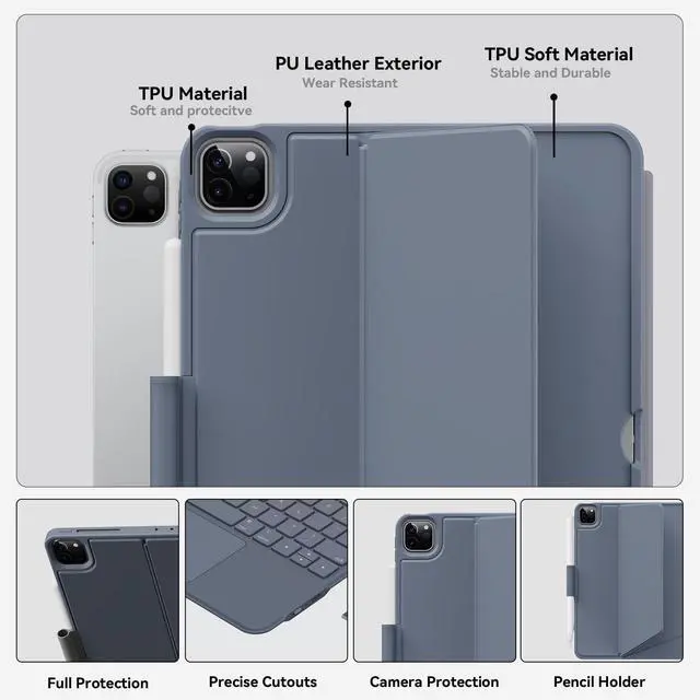 Full Protection: Made of durable PU leather exterior, covered with translucent PC hard back shell, Magitype keyboard case for iPad 10th generation protects well ^^ Large and
