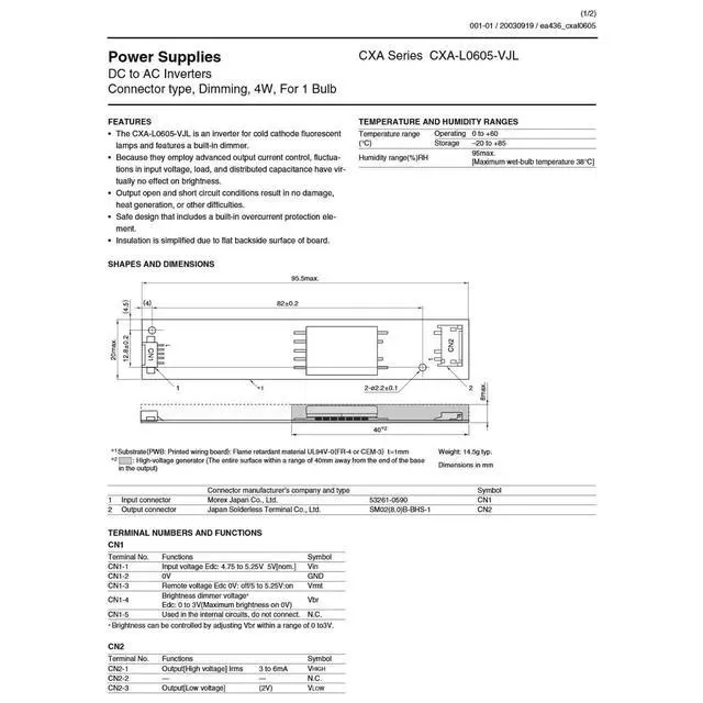 The CXA-L0605-VJL is an inverter for cold cathode fluorescent lamps and features a built-in dimmer.