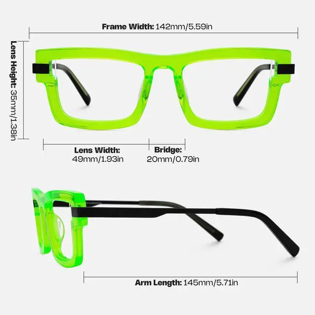 Elevate your style with our rectangular glasses frame, designed for the modern man. Express your individuality with our fashionable design and bold color choices. ^^ Crafted from high-quality acetate, our glasses frame ensures durability and comfort for all-day wear. The sturdy material offers a sophisticated look while providing a lightweight feel. ^^ These clear lens glasses are perfect for adding a touch of sophistication to any outfit. Whether at work or social events, our frames are versatile and always in style. ^^ Blue light blocking glasses can effectively block blue light and UV400, which is very suitable for people who often work in front of the screen or play games.
