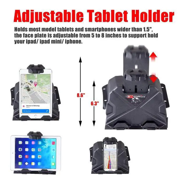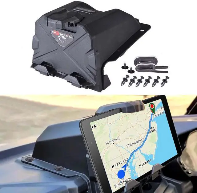 ^^: Phone / Tablet / GPS Holder Mount for Polaris General, mount for most of tablets and phones( 5.1" to 10" ) in place, it can hold your tablets and phones safety, supported sizes of tablets and phones: width large than 1.5 inches, and height between 5-8 inches ^^ /: The Navigation System Mount provides additional storage without taking up space and can be mounted directly above the dash. A good place to store your personal belongings, for example, wallets, gloves, tissues, glasses, etc.