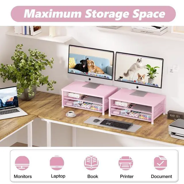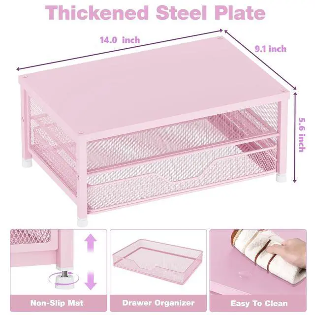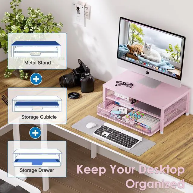 Ergonomic ComfortOPNICE monitor stand elevates your screen to an ideal eye level, effectively reducing neck and shoulder strain. Whether you're working, studying, or gaming, it keeps you comfortable and focused for long periods of time ^^ Maximize Desk SpaceThe 2-Tier desk organizer with drawer provides more than 70% extra storage space, easily organizing files, office supplies and desk accessories. Keep your desktop neat and tidy, enhance your sense of well-being and enjoy a productive and clutter-free work environment ^^ Sturdy & ReliableThe monitor stand is completely made of high quality metal, sturdy and durable, not easy to shake.