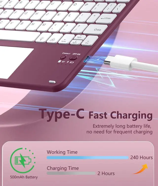 Battery Life: Hamile for iPad Pro 11 inch case with keyboard built-in 500mAh high capacity battery and enters energy-saving mode automatically if not in use for 10 minutes, which ensures you can use at least 240 hours. It can be fully charged in 2-3 hours with Type-C charging cable ^^
