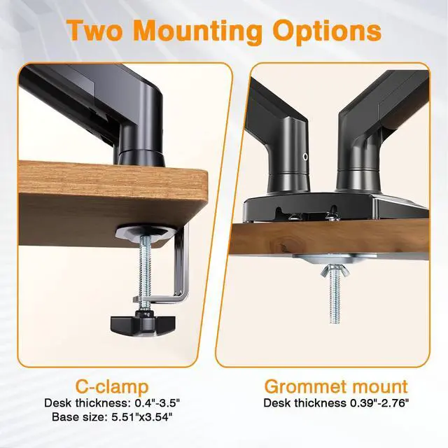 Quick Installation: Includes both C-clamp (fits desks 0.39 - 2.76" /10-70mm) and grommet mounting options. All hardware and tools included for 10-minute setup ^^