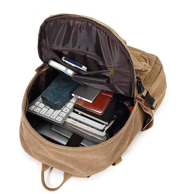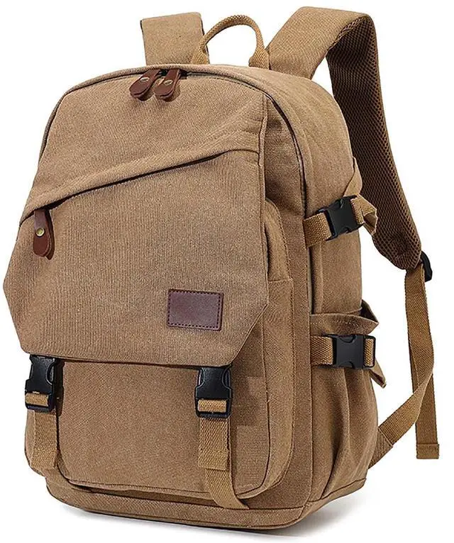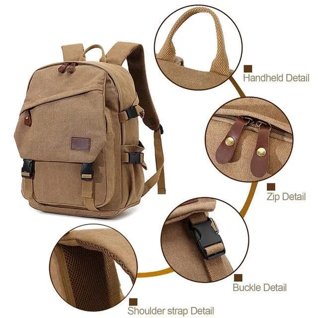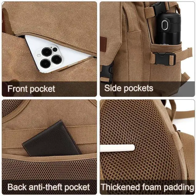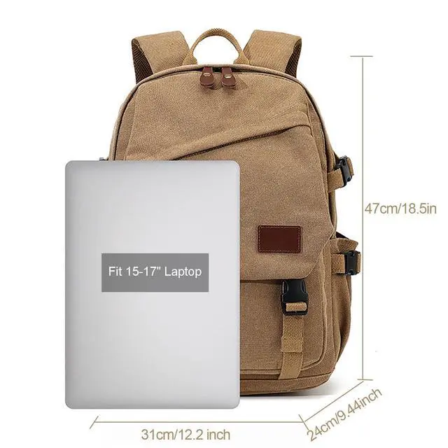 Large Capacity Backpack Canvas Backpack Size: 12.2 * 9.44 * 18.5" (L*W*H), About 35L, Weight About 2lbs, Enough Capacity For Daily Necessities Such As A4 Binder, 13- 15.6 Inch Laptop, Ipad, Bulky Binders, Notepads & More. ^^ Durable Backpack The Augur Classic Canvas Backpack Is Made From High Density Canvas, With Smooth Zips And Reinforced Shoulder Strap Seams To Ensure It Is Strong And Long Lasting. It Features A Flap And Buckle Design For A Stylish Retro Look And Security, Adjustable Shoulder Straps And A Thick Foam Padded Back For Comfort. ^^ Spacious And VersatileThis Retro Casual Backpack Has 2 Large Compartments, 1 Front Pocket, 2 Side Pockets, 1 Back Zipper Pocket, Main Compartment With Internal Compartment For Ipad And 15.6 inch Laptop To Protect Electronic Devices, Organizer Pockets For Small Items Such As Mouse, Usb Cable, Keys, Coins, Etc., Side Pockets For 600ml Glass Of Water, Umbrella, Back Zipped Pocket For Personal Valuables. ^^ Multi-PurposeUnisex Design Rucksack For Hiking Backpack, Causal Travel Daypack, Shopping Daypack, Laptop Backpack, Work Or Office Rucksack Etc. Canvas Backpack for Men Women ^^ Comfort And ConveniencePadded Back With Thick Foam Padding To Relieve Pressure On The Shoulders And Added Luggage Straps On The Back Make Airport Travel Ideal For Weekend Overnight Stays, Business Or Personal Travel.