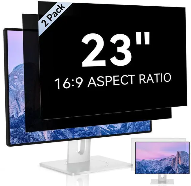 PRIVACY FILTER DIMENSIONS Width: 20 1/16" (510 mm), Height: 11 5/16" (287 mm), Diagonal: 23" ( 584.2 mm)- Aspect Ratio 16:9. Mamol computer privacy filters are designed to be perfectly compatible with HP, Samsung, Dell, Lenovo, Acer, Asus, LG, ViewSonic and other brands of monitors. Please check the width and height dimensions of your computer screen before ordering. ^^ ENHANCED PRIVACY PROTECTIONMamol 23in computer privacy filter keeps your electronic information confidential, making it excellent for use in high traffic areas. the computer privacy screen 23 inch is designed with advanced microlouver technology to block visibility at around 30 degrees and black out screens completely near 60 degrees. ^^ BETTER HD CLARTIYMamol 23 inch computer privacy screen Shield adds an extra layer of AR Ultra HD light transmission compared to others. It maintains the high definition of the screen without sacrificing too much screen brightness. It won't reduce the brightness and cause eye fatigue because of the privacy screen installed on the screen. ^^ EYES PROTECTION This blackout privacy screen greatly reduces eye strain and minimizes potential hazards to vision. It filters 99.9 % of UV rays and suppresses 98% of blue light. As a reversible 23inch privacy screen filter: The glossy side of the protector provides extra clarity and greater privacy, and the matte side minimizes glare and distracting reflections. Satisfy your different daily uses as needed. ^^ ANTI SCRATCH & WASHABLE Our privacy anti-glare film has a surface enhancement layer to protect the privacy filter from scratches and fingerprints. It is washable and reusable. Even after prolonged use, you will get a brand new privacy screen for your desktop computer monitor after cleaning. Very Durable! ^^ TWO INSTALLATION OPTIONS 1) Apply clear adhesive stickers directly on the monitor privacy screen filter to hold it in place on the monitor screen itself; 2) Install these plastic slide mount tabs on the outer rim of the screen to hold the privacy screen in place (for computer screens with a raised bezel only), allowing you to slide the filter on and off the screen as needed. All accessories and installation instructions are included in the packaging. ^^ LIFETIME FREE SUPPORT Mamol computer privacy screen filters are protected under Mamol lifetime policy and if anything happens we will send you a new privacy screen at absolutely no cost. So please don't hesitate to place an order, giving your computer screen best privacy and protection while working in travel or open workspaces.