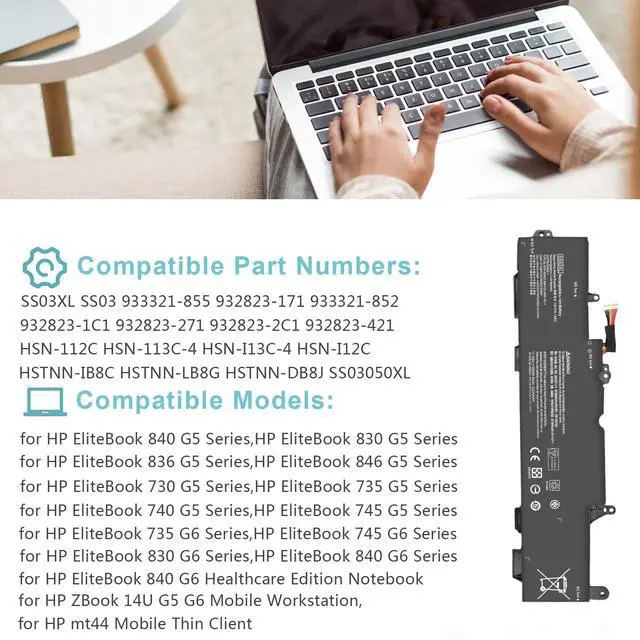 SS03XL 50Wh 933321-855 Battery for EliteBook 730 735 740 745 830 846 G5, EliteBook 735 745 830 G6, ZBook 14U G5 G6, EliteBook 840 G5 G6, SS0 3050XL 932823-421 933321-852 932823-1C1 HSN-I13C-4
