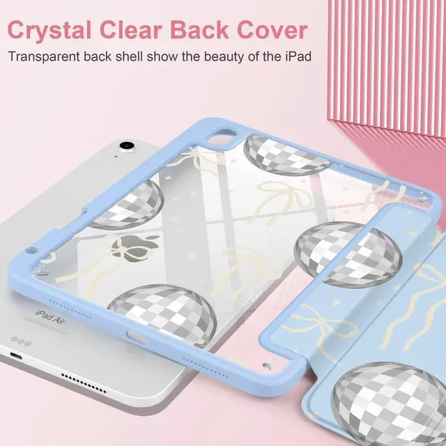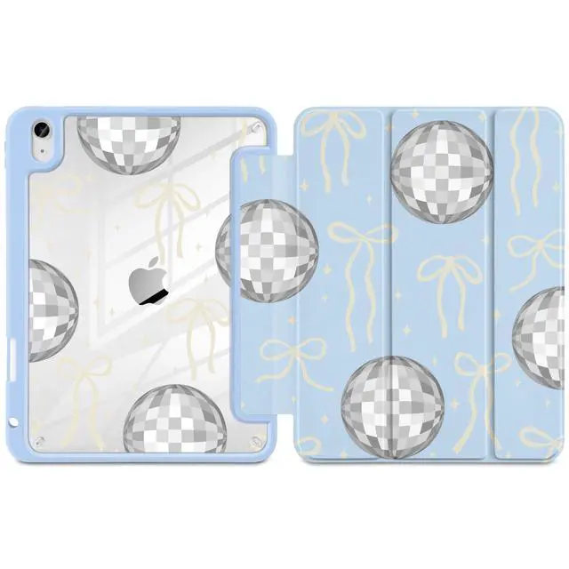 MEEgoodo Case for iPad Air 11 inch M3 2025 / M2 2024,for iPad Air 5th / 4th Generation Case 10.9 inch 2022/2020, Tablet Cover with Acrylic Transparent Back Shell, Silver Disco Balls & Bows