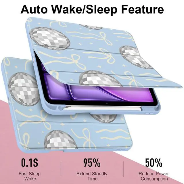 Generation(2022/2020) Characteristic: 1. The case is made of premium PU exterior, microfiber lining and clear acrylic back cover 2. Case automatically wakes your tablet when opened and puts it to sleep when closed 3. You can easily fold the cover into different positions to create a stand for reading, viewing, typing, or making FaceTime calls 4. Built-in pencil holder, grab your tablet pencil effortlessly whenever you want, easily carry your tablet pencil with your device 5. Easy to Installation and remove 6. Convenient to use all the controls and features