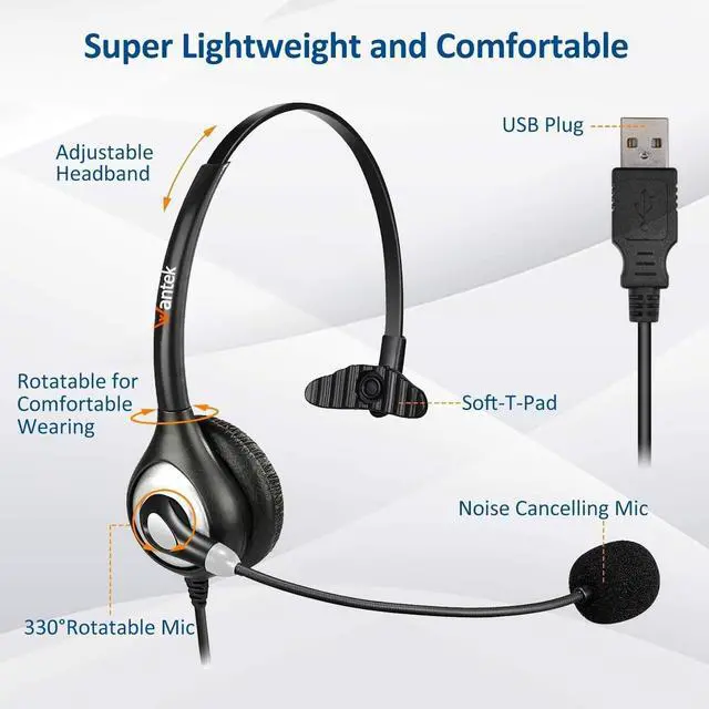 ^^ ULTRA DURABLE: Precision design, quality plastics, uni-body headband construction, flexible metal mic boom make this USB Headset with Microphone for Computer more durable and sturdier. 2-YEAR WARRANTY & 45 DAYS MONEY BACK.