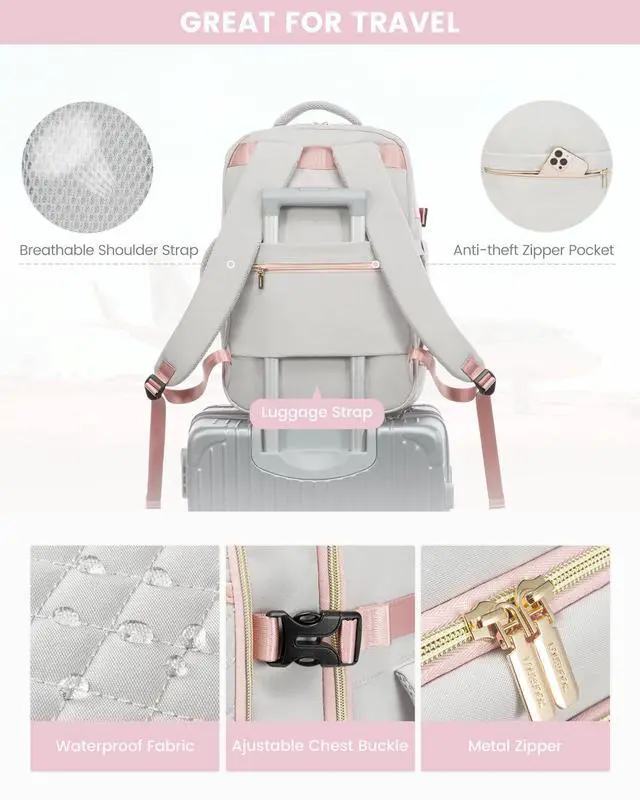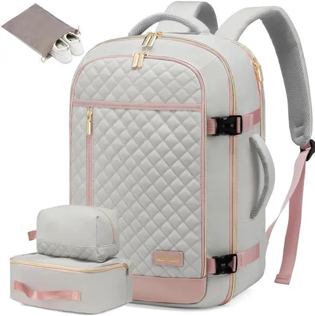 ^^ TOILETRY BAG AND WET POCKETS Equipped with 1 packing cube, 1 toiletry bag, and a shoe bag. You can put underwear, socks, and small clothes neatly inside. The shoe bag is 16.9 inches/43cm long and can hold 1-2 pairs of shoes. A zippered wet compartment pocket can help you to separate dry items and wet items, and prevent any leaks or moisture from affecting your other items. Pack smarter, travel lighter, and embark on your next adventure with confidence. ^^ PERFECT FOR BUSINESS AND TRAVEL Experience the perfect blend of convenience and style with our versatile travel backpack.