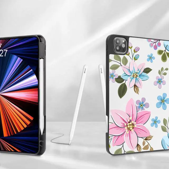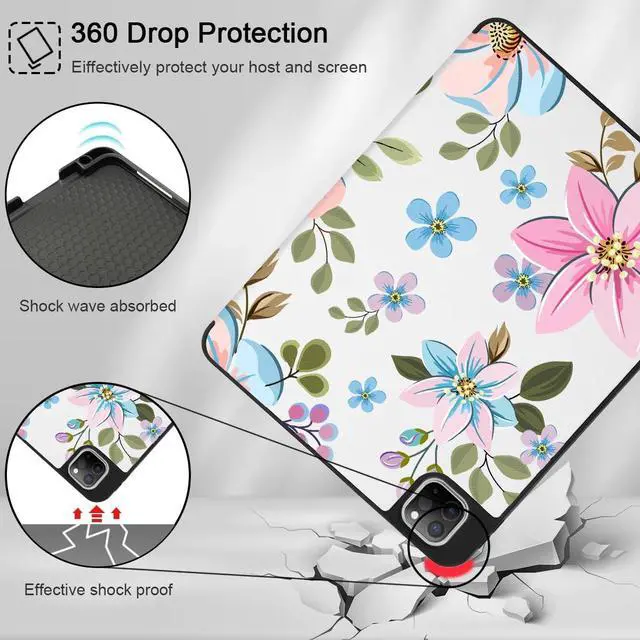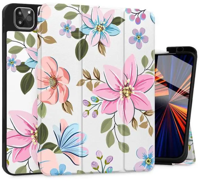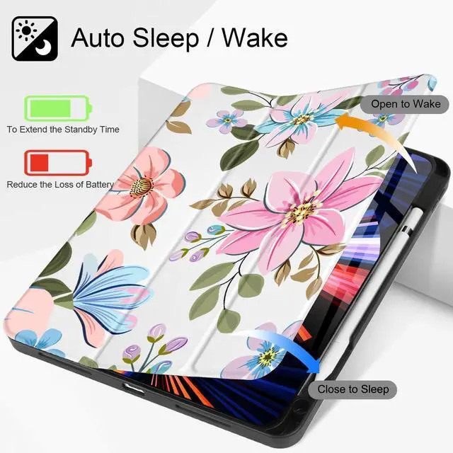 Tuiklol Case for iPad Pro 12.9 inch M2 Generation 6th / 5th / 4th / 3rd 2022 2021 2020 2018 Release - Built in Pencil Holder Slim Protective Cover with Auto Wake/Sleep, Tones Flowers