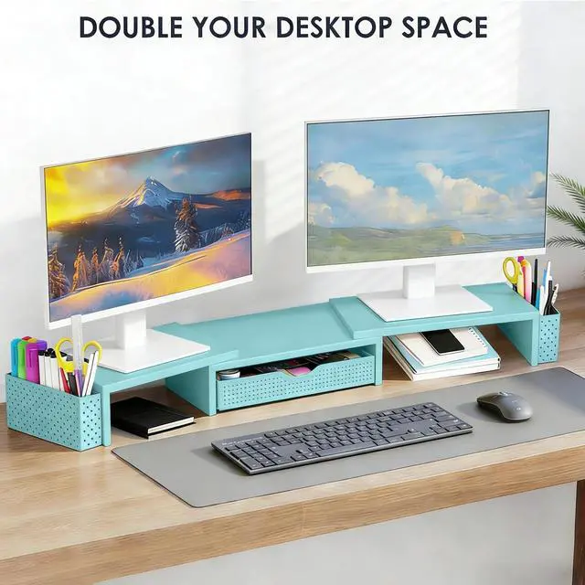 Dual-screen office efficiency improvement: This desktop organizer is equipped with a dual-display stand, which can place two monitors at the same time, effectively expanding the workspace. It also has adjustable length ( 27.6 - 40.6 inches) and angle to provide you with a better viewing experience.