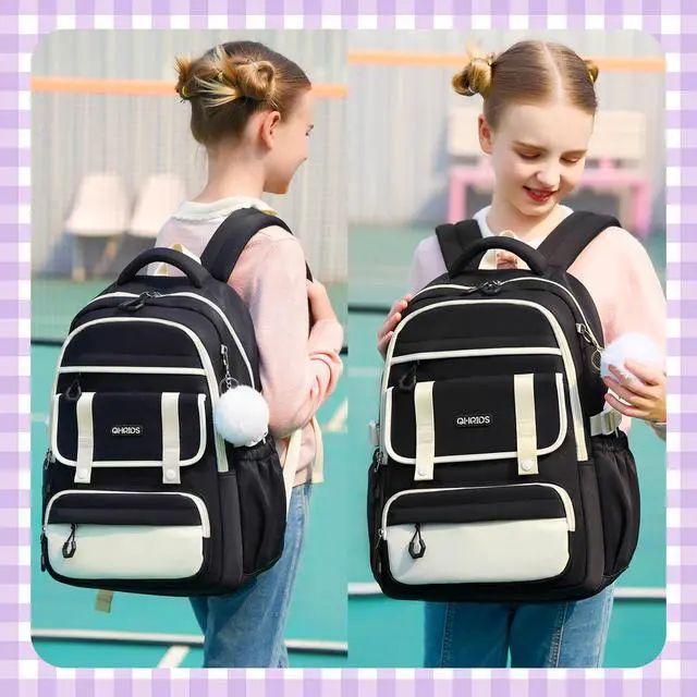 Durable Material: This girls student backpack is made of waterproof, abrasion resistant, tear resistant, lightweight high density nylon fabric, all seams are reinforced, this student to ensure the long lasting durability of the student backpack. This student school bag uses a high quality zip which is very smooth to use and solves the problem of zips during use. This backpack for girls shoulder strap buckles are non-slip to ensure comfort during use ^^ Large
