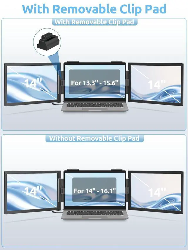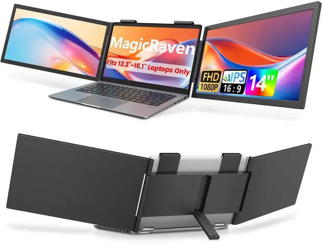 Portable & Save Desk Space: Weighing only 3.4 lbs, MagicRaven Dual screen for laptop can easily climb onto your laptop and become a second and third screens without additional desktop space. It slides into the carry bag (not included) easily, so you can take it Home, Travel, Office, Coffce Shop, Hotel, Airport, Courtyard, Etc. Perfect for people who work and play on the go or from the home.