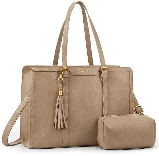 LOVEVOOK Laptop Bag for Women Vintage Leather Work Tote 15.6 inch Large Capacity Computer bag with Clutch Purse for Office, Travel, School, Casual