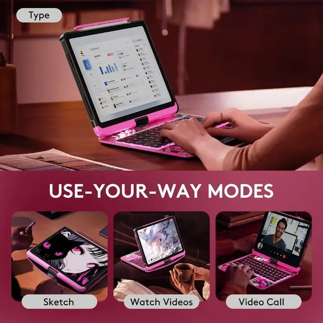 Precision Trackpad: Boost your iPad's functionality with a built-in wireless keyboard and precision touchpad for easy navigation and editing. Perfect for professionals, students, and creatives who need laptop-like control on the go.