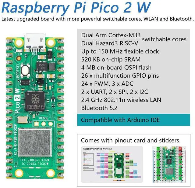 Latest Version: Higher core clock speed, double memory, more powerful Arm cores, optional RISC-V cores (compared to the 1 series) (This W version has onboard wireless LAN and Bluetooth) ^^ 3 Sets of