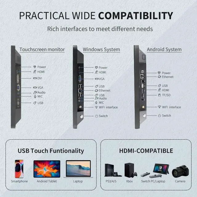 Multifunction Smart PC: can be used as a CCTV monitor for security cameras, menu screen for restaurant or used as part of a POS system. Ideal for industrial touch display, offices, retail, restaurants, bars, gyms, warehouses, etc ^^ Plug and
