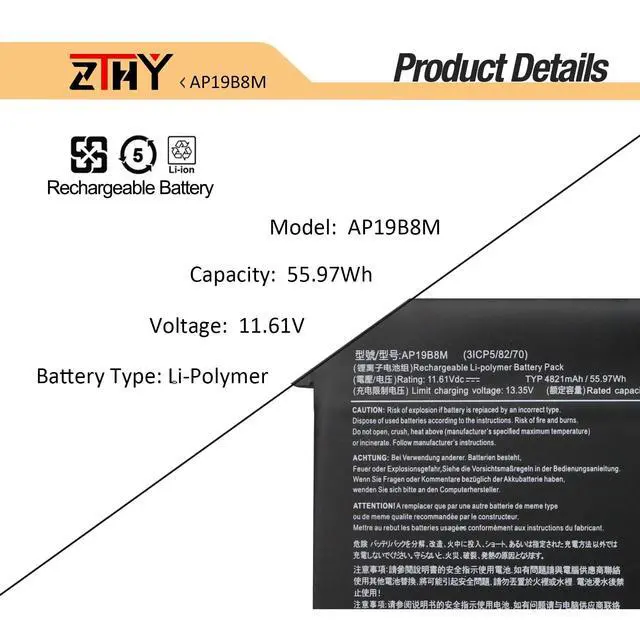 Compatible Part Number: AP19B8M KT0030G024 3ICP5/82/70 ^^