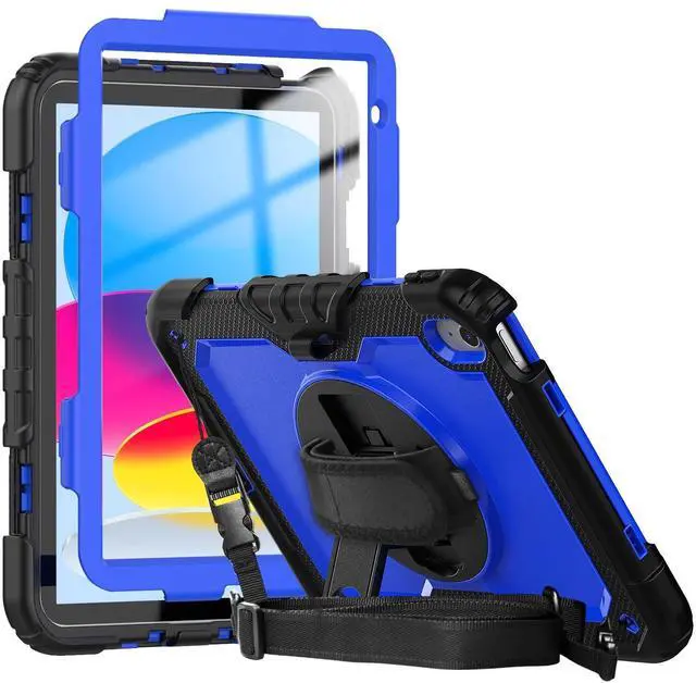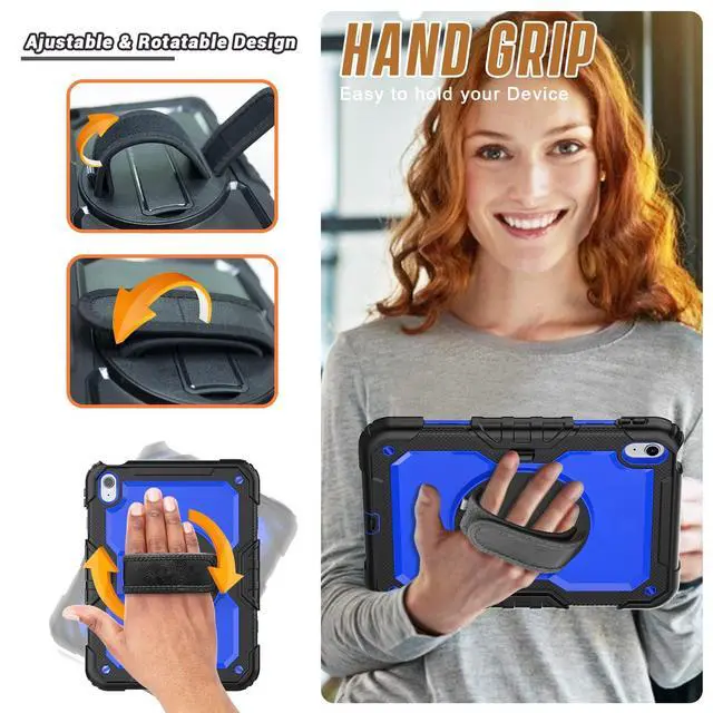 Hand Strap: 360-degree rotating swivel stand supports position of 3 angles(Vertical, Horizontal, and Halfway between), ideal for watching videos, conferences and travelling. Soft rotating handle strap prevents falling of iPad Generation 10th tablet, featuring convenient use for teachers, students, waiters, doctors, nurses and conference presenters.