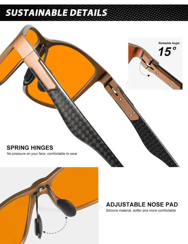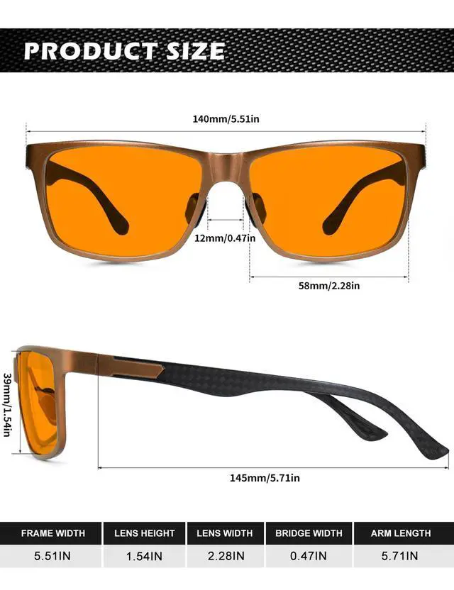 • Premium Temple Material: With superior Al-Mg and carbon fiber composite temple, this type of blue light blocking glasses for men is ultra-light than pure metal frame, also more sturdy. No more worries about broken temples. As more suitable for anyone who often work or play games by the computer, do not miss this pair of practical and classic blue blocker glasses.