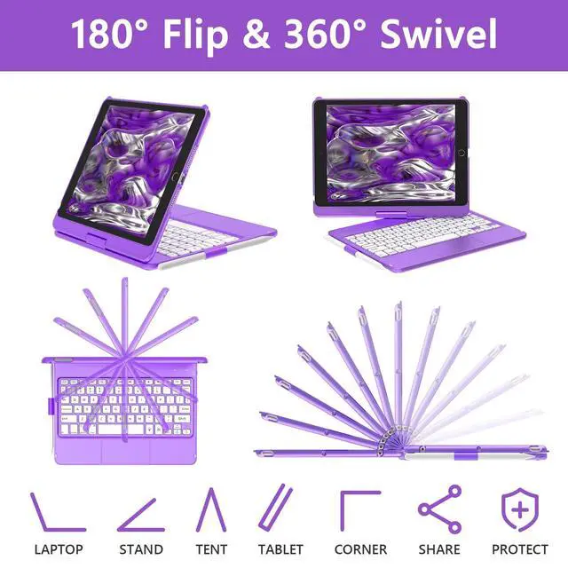Trackpad Keyboard: For iPad 9th/8th/7th generation keyboard case with touch features laptop-like isometric keys, shortcut keys and built-in touchpad. When you have our keyboard for iPad 9th generation, you can browse the web, edit documents and build presentations at a faster speed by iPad 9th generation keyboard. Save 80% of your working time and increase your productivity by 90% ^^ 7 color
