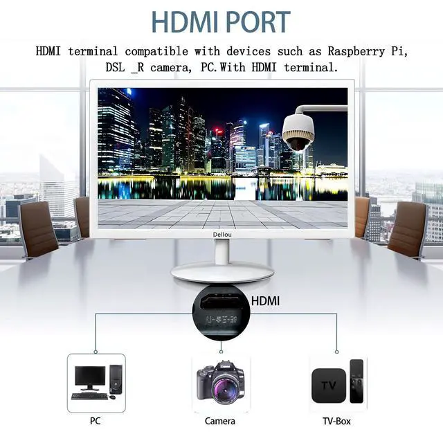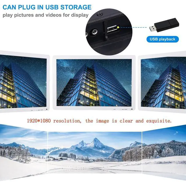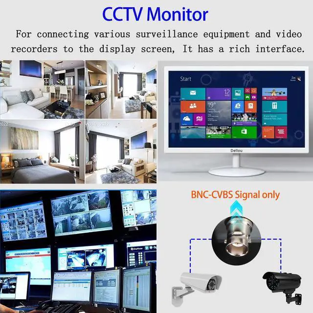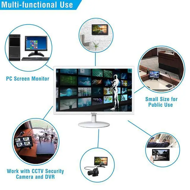 Screen Aspect Ratio: 16:9 This monitor screen is suitable for home, office, warehouse, convenience store, hospital, clinic, supermarket, etc. This monitor features HDMI, VGA, AV, USB, BNC, compatible with laptop, PC, PS3, PS4, etc., users can easily connect to other devices for even more You can enjoy it. Remote; VESA 75*75mm & built-in speaker. Support remote control to control this LCD monitor and use the wall bracket to mount it on the wall, making using this cute monitor more convenient and saving your time. Can be used as CCTV system, rear view camera, PC monitor, video recorder, notebook or monitor for indoor security use. Suitable for games, computer use, etc. What's included in the package. 1x white monitor1x remote control (batteries not included) 1x Wall Mount Bracket1xHDMI cable1x power adapter1x User's Manual