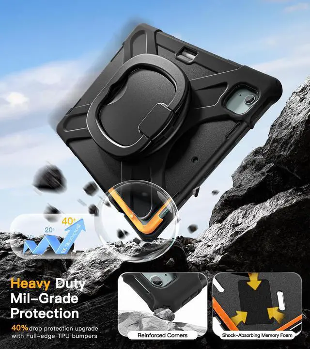 Functionality: 360rotating/180folding grip can be used as a handle, easy to hang your iPad in kitchen, washroom, bedroom; Kickstand is stable enough to stand on different surfaces for children to view. Button and port cover enable to prevent dust, it also support Apple Pencil 2nd Gen