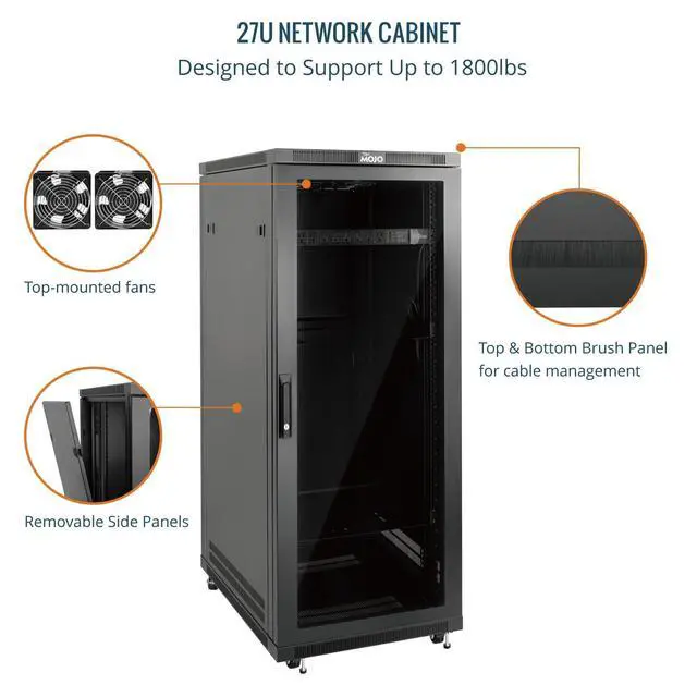 Maintenance Access: Featuring lockable front doors and removable side panels, the cabinets provide secure storage and effortless access for maintenance. The side panel simplifies servicing, making them ideal for dynamic IT environments ^^ Efficient, Quick