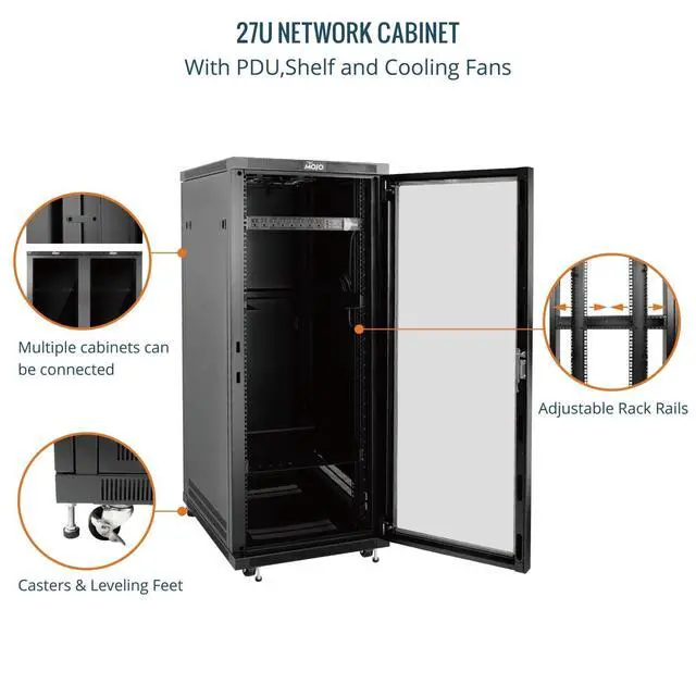 Accessories & Expandability: Includes a pdu, cantilever shelf, half-support server rack rails, and top and bottom brushed panels for organized, dust-free cable management. Cabinets can be connected for scalable expansion, accommodating growing infrastructure demands