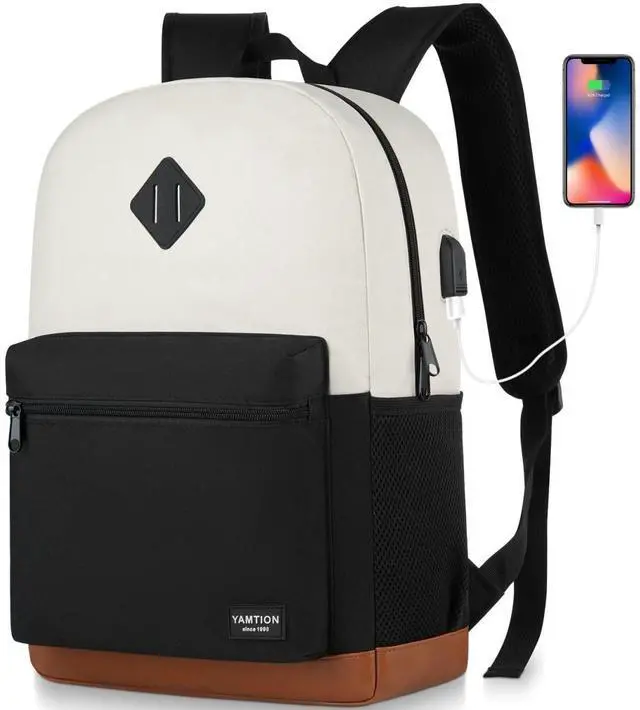 YAMTION School Backpack,Bookbag Teen Boys and Girls Black Beige