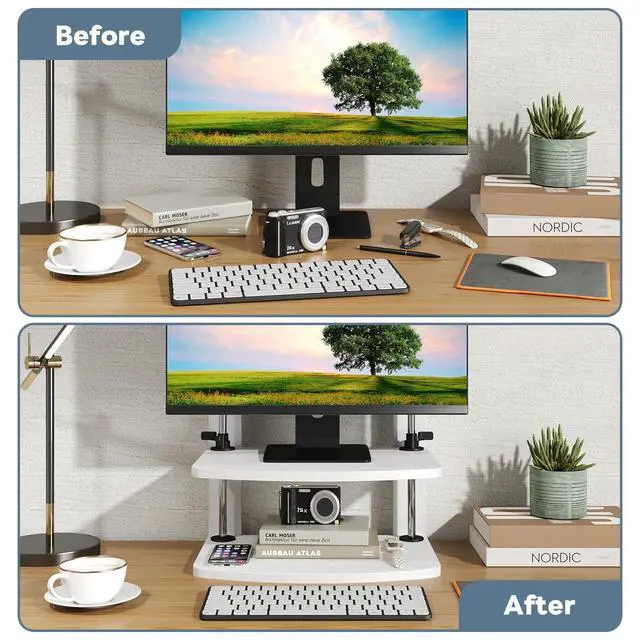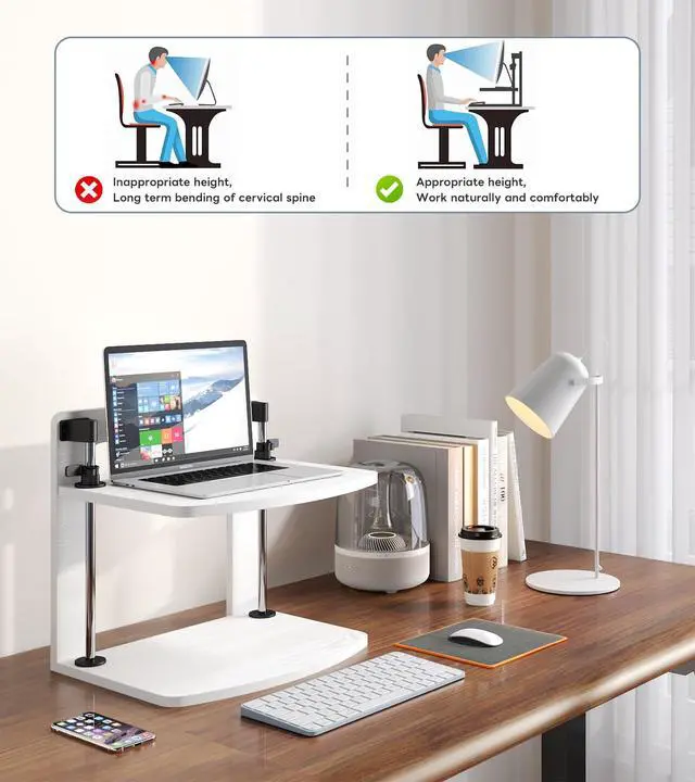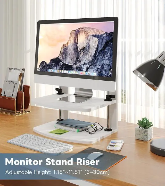 WikrOck 15.6 14 13.3 Inch Laptop Computer Monitor Stand Riser for Reduced Neck Strain, Adjustable Height Desk Shelf Organizer Monitor Riser Stand for PC Monitor Laptop - Withe - Wood Grain, MR01-LProduct