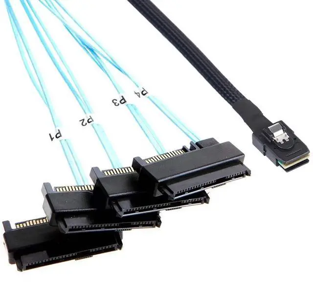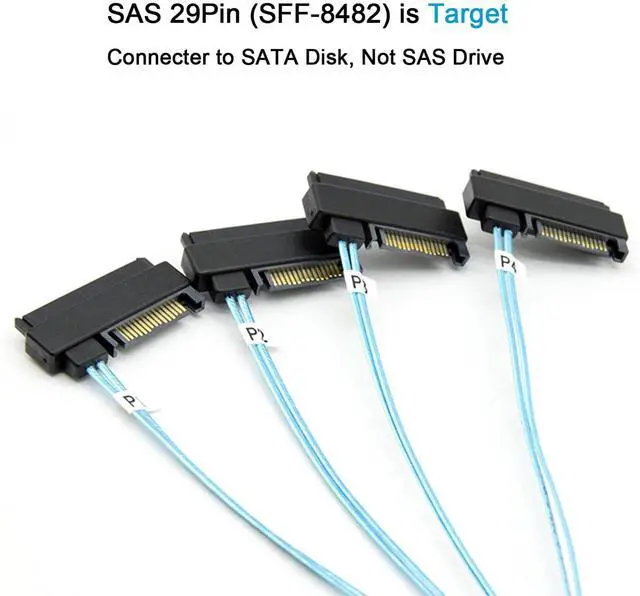2-Pack Mini sas 36 sff-8087 to sff-8482 sas forward breakout, Internal mini sas 36 Pin sff-8087 sas connector male connect to sas raid controller or motherboard, SAS 4x sff-8482 connectors with sata power connecter to backplane or 4 HDD, each sas sff8482 adapter contain sata 7pin data and sata 15pin power adapter, NO middle SAS pin, Note: sff-8087 to sas sff-8482 cable do Not work with SAS Driver, Donot connecter SFF-8087 on your backplane, otherwise the mini sas to sas breakout will not work with them ^^ Mini sas sff-8087 to sas cable 1M, sff-8087 host to sff-8482 target, sas 8087 host connect to SAS HBA or PCIe controller, mini sas 36 sff-8087 to 4x sff-8482 connectors with sata power port link between the serial SCSI controller and the SATA disks, need to attach SATA power supply cables for each sas to sata adapter connector, sas 8087 8482 cable data transfer rate up to 6Gbs per drive ^^ SFF 8087 to sas breakout cable with power, 8087 male sas connector for expand storage use, sas to sas cable are labled, simple up your cable management game, mini sas sff-8087 sff-8482 data transfer cable easy link serial SCSI controller and the SAS/SATA connector ^^ SFF-8087 to sas breakout cable build with thin sas cable and tape/braid weaved design, length choice mini sas to sas 0.5M short/sff 8087 8482 0.5 m and long sas breakout cable 1M/mini sas to 4x sas 1M, braided sff-8087 to 4 sas cable easy to route after installation, the mini sas to sas breakout cable is good choice for DIY and professional installers ^^ The package you will receive includes ( 3.3FT /1M, 2xPCS) Internal Mini sas 36pin sff-8087 to sas sff-8482 with SATA power adapter cable